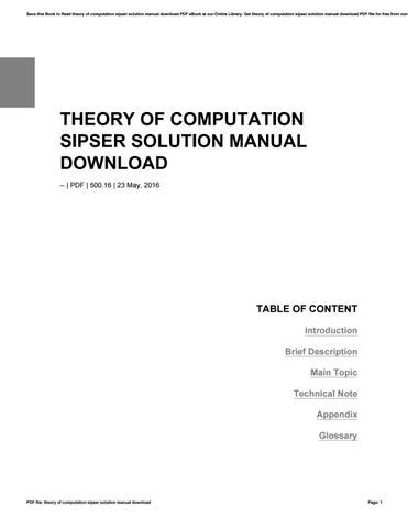 Read Online Theory Of Computation Sipser Solution Manual Download Epub By Click Button. Theory Of Computation Sipser Solution Manual Download it’s easy to recommend a new book category such as Novel, journal, comic, magazin, ect. You see it and you just know that the designer is also an author and understands the challenges involved with having a good book. You can easy klick for detailing book and you can read it online, even you can download it